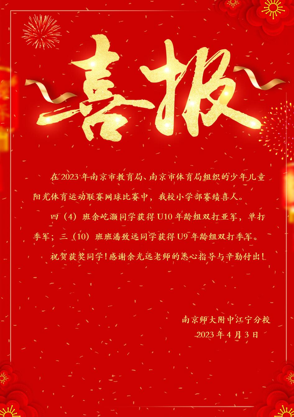【喜报】少年儿童阳光体育运动联赛网球比赛